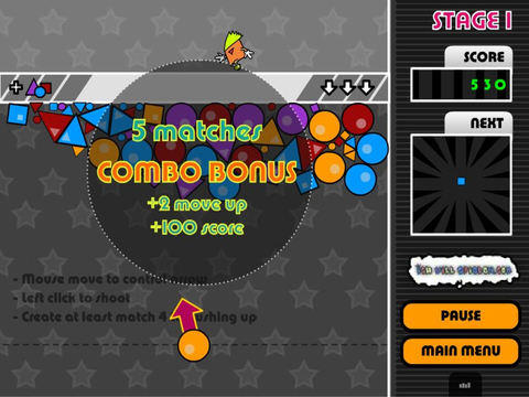 把各种图形消去,然后把小怪物往上推才可以过关哦!快来挑战吧!