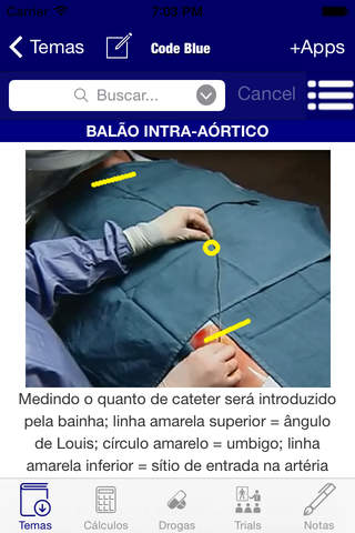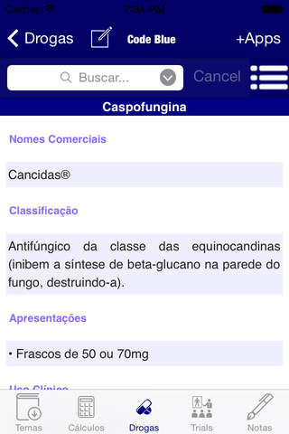 2) GUIA DE DROGAS, com mais de 200 medicamentos utilizados em medicina intensiva e emergência. Informações práticas, confiáveis e rápidas sobre cada medicamento, com busca pelo nome comercial, princípio ativo ou qualquer indicação clínica. Dentre as centenas de medicamentos destacamos: Amiodarona, Dobutamina, Dopamina, Noradrenalina, Milrinone, Vasopressina, Dexmedetomidina (Precedex), Caspofungina, Micafungina, Polimixina B, Imipenem, Ceftazidima, Cefepime e outros.