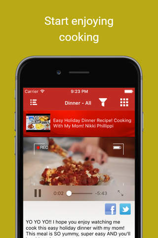 CookBook Recipes app help you to prepare delicious and healthy food recipes from around the world through videos. You can enjoy different type of cuisines at your home using our app. Try different type of food recipes through our app. You will enjoy preparing healthy and tasty food recipes. We will give you different varieties of food recipes around the world to your kitchen. You can try vegetarian recipes and non veg recpies. Start with easy homemade food recipe like easy dinner menu with step by step picture. If you are a beginner then try quick and easy recipes for free. Cook new recipes of delicious desserts and slow cooker zero calories recipes. Start cooking latest appetizers like frozen England ice cream bar to vegan ice cream recipe. Best diet food for diabetic patient and diet plan to reduce weight are available. Diabetic meal planner can be scheduled with diabetic recipes. If you are a health care person then try healthy recipes for weight loss or diet plan for fast fat burn. Tomato fruit juice recipes for weight loss and cocoa fresh fruits juice maker are good bodybuilding American recipes. Japanese fish recipes - sushi sauce and Greek lasagna soup with Cheeseburger Italian dishes are a combination for vitamin protein. Cooking desserts like chocolate brownies cheesecake and fudge muffin jam is fun. Stop looking at non veg food items book and use our application. Try these with United Kingdom and Scotland wine or with Nepali lemon juice drink. Make cool drinks and cocktail recipe in your free time along with British hot dogs and hamburger. Make seafood hakka noodles with crab and tuna. Pakistani mutton gravy and shrimp grilled meals are good camping Muslim food recipe. Christmas Mexican cuisine and Easter French recipes can be cooked in seasonal holidays. Belgium beef recipes and thanks giving Turkey can tried in seasonal festivals. Gujarati panner curry and Punjabi beef beriyane are collected from North Indian cook book free. South Indian recipes collection include eggless dessert smoothie and Kerala fish curry recipes. This is an American chef book for children. Lunch box for school kids can be make with easy food recipes in English. Making yummy and easy cooking recipes is fun. If you love European food then cook Dutch bread toast and butter omelet along with Portuguese chilli potato fry. Learn how to make carrot juice and soda papaya shake with our Italian recipes cookbook. Spanish potato chips and red hot chili pepper chicken fry with spices masala vegetables is a receipe for microwave oven. Make sweet corn bean halwa and gluten free thantori chicken nuggets which are good Ramzan Id special recipes. During Eid ul Fitar make Arabian tandoori chicken biryani and Malaysian dry fruits salad. Ramsan mutton curry recipe book will teach us tarla dalal and garam masala kabab. Asian banana pudding recipes and mushroom veggie pezza are common in Korean food guide. Cookies baking tips without fire and Irish party vegetable salad are added with cool strawberry wedding cake designs. African bacon pancakes and Caribbean grill chicken wings with Canadian fruit pastry are good dinner recipes. Canada taco fresh meat ball and BBQ Australian barbecue chicken dishes are zero oil recipes. Vietnamese mutton soup recipes and Indonesian fried rice are the best Eid al Fitr casserole food. Home made candy jelly can be make with crockpot and pressure cooker. Other offline meatloaf dish are Cuban lamb meat recipie and stew Moroccan mutton biryani. Learn coffee and snacks recipes like in a donut bakery cafe. Egg less wraps and finger roll are canning German recipes. Brazilian bread sandwich and Jamaican salmon patties are crock pots recipes. Sri Lankan beef curry and spicy chana masala dosa are very tasty food. Chinese dishes like Thai tikka masala and quiche dressing toffee are good breakfast Chinese recipes. Bulgarian dumpling veg sandwich and New Zealand cupcake lollipop along with burger French fries is an awesome combination.