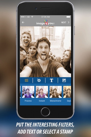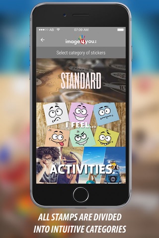 The IMAGE4YOU app allows you to take photos directly from your phone, add creative stamps / stickers from a category you want, add professional color effects or a text of your choosing.