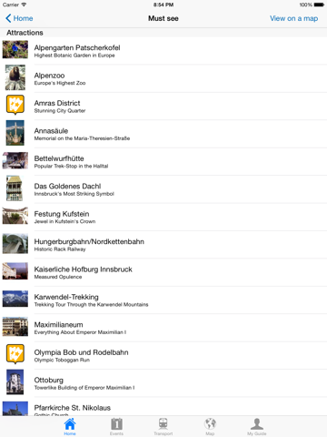 • English, German and French languages are supported for the travel guide content (event section is mostly in English).