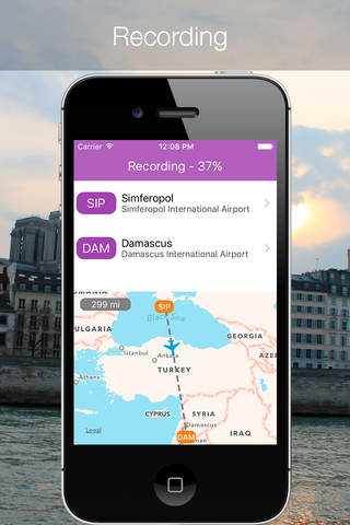 Select the airport of departure and the airport of arrival, and the app will create a beautiful video clip with animation of your flight that you can share with your friends!