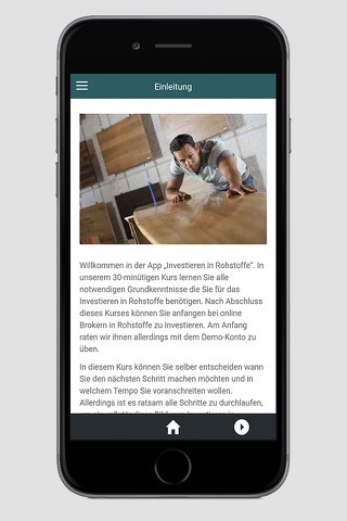 Willkommen bei der App „Investieren in Rohstoffe“. In dieser kostenlosen App können Sie mit Ihrem Smartphone oder Ihrem Tablet in 30 Minuten alles über investieren in Rohstoffe lernen. Nachdem Sie diesen Kurs abgeschlossen haben, haben Sie das Wissen, das Sie für den Onlinehandel in Rohstoffe brauchen.