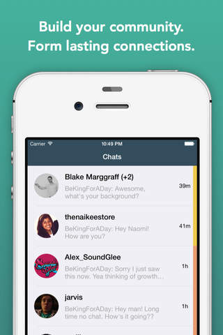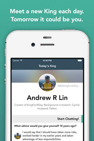 KingForADay appoints one community member per day for the entire community to chat with. Meet random new people. Use your Kingship as a platform for your cause. Engage the community with useful information, banter, and fun.