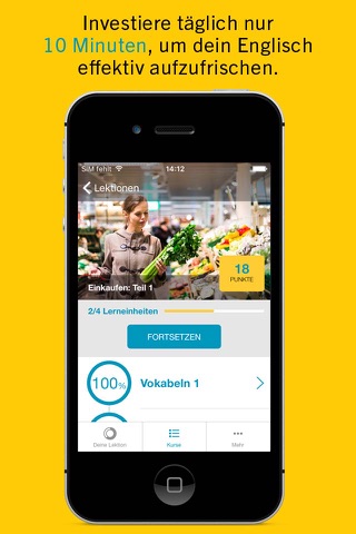 Flexibilität ist beim Lernen von Sprachen essentiell. Deswegen sind alle Lektionen in der App kurz gehalten. Je nachdem, wie viel Zeit du zur Verfügung hast, kannst du selbst entschieden, wann, wo und wieviel du lernen möch-test. Nur 10 Minuten am Tag reichen aus, um dich täglich zu steigern.