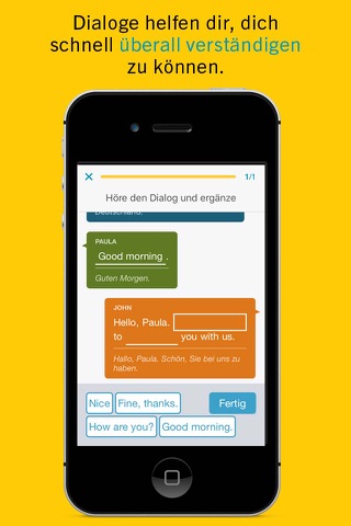 Setze das Gelernte in einen relevanten Bezug und wende dein Sprachwissen in gängigen Dialogen direkt in der App an. Dabei sind die Lernübungen interaktiv gestaltet und setzen sich aus Schrift, Bild und Ton zusammen. So ist für jeden Lerntyp was dabei und das Lernen macht Spaß.