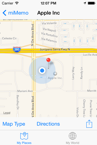 This paid version allows you to save as many locations as you like. If you want, you can try out this App for free. Just search for “miMemo” in the App Store. The free version will only allow you to save 3 locations though.