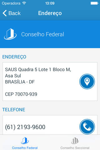 Disponibiliza uma base de informações contendo endereços, telefones e áreas de atuação dos membros do Conselho Federal, Seccionais e Subseções.