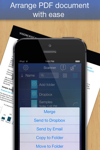 You will really appreciate the way PDF Scanner combines scans as multipage documents, and its ability to arrange these documents in any manner you like.