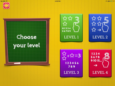 Level 1 – Lets the child practice writing, understanding, and applying numbers 0 to 9 in a logical order. This base level sets the foundation for the rest of the levels on the app.