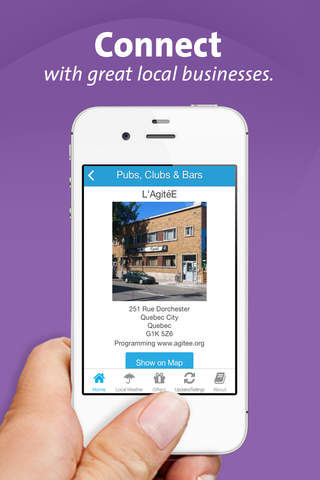 The Québec City App allows you to explore the city like a local. It’s also free and easy to use! Discover what’s nearby, connect with great local businesses, claim exclusive special offers, plan your trip with local weather forecasts and stay connected with what’s happening in Québec City.