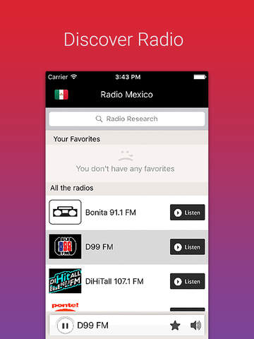 A real music finder Pandora box for real music gourmands. With Radio Mexico you will find your favorite playlist, best music streams and coolest fm podcasts.