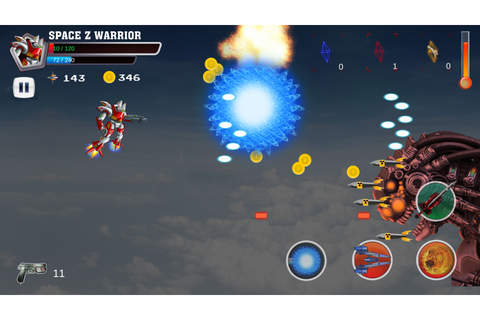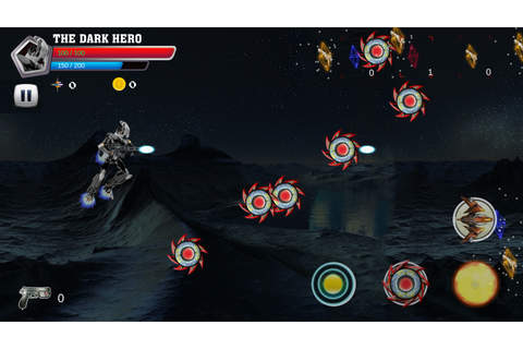 Our games require you use 2 fingers at least to play the game, left finger will control the robot fly and the right finger will touch to use super skills in right corner. Each super skill need to spend a number of power in power line and you can’t fire the super skill if not enough power.