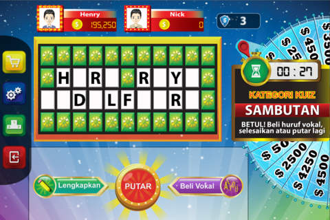 The creation of Roda Impian is to train your knowledge of words and phrases in Malay in a more exciting way. This game works like a mind power trainer which will make you addicted and fun to play. Your luck and victory are solely depend on the spinning of the wheel and your intelligence to guess the letters or words and phrases in Malay.