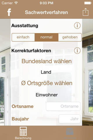 Unsere App bietet Ihnen eine einfache, schnelle und unkomplizierte Möglichkeit, Ihre Immobilie anhand von den wichtigsten Kriterien zu bewerten. Die entstandene Summe ist ein Richtwert und kann damit von einem qualifiziert ausgeführten Sachwertverfahren eines Sachverständigen vor Ort abweichen.