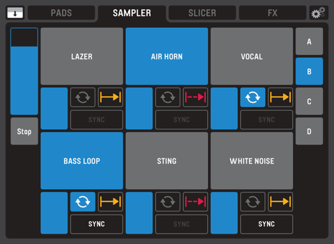 • Adjust volume and playback of each sample individually or use Master Sampler Volume