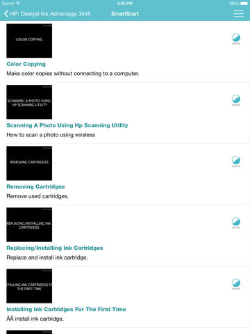 Showhow2 for HP Deskjet 3545 is a completely new kind of how to app. It is focused on the HP Deskjet 3545 printer organised intuitively to take you to your solution quickly. How to connect the printer to your computer, how to scan a photo, how to remove and change cartridges, how to setup wireless printing. Its all there - in step by step video. You can key in a simple search like "cleaning" or go through the many organised sections like SmartStart ­ your must use features, Levels and Most viewed. You can also get started with the given popular Tags.