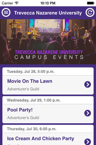Use the Trevecca Nazarene University Events app to find out what events are happening and find out how you can get involved on campus!