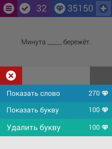 "Угадай слово из фразы" - отличная игра на развитие сообразительности, памяти и логического мышления! Ваша задача - получить целое предложение, записав в пустое поле недостающее слово. Если уровень показался слишком сложным, Вы можете использовать одну из подсказок. Дополнительные монеты можно получить за выполнение достижений. Так же Вы можете поделиться своим результатом с друзьями в социальных сетях. Приятной игры!