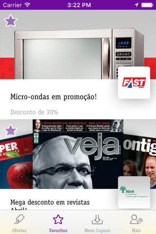 - Não perca uma oferta: favorite aquele cupom que é perfeito para você!