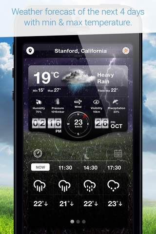 • Weather forecast of the next 4 days with Minimum temperature and Maximum temperature.