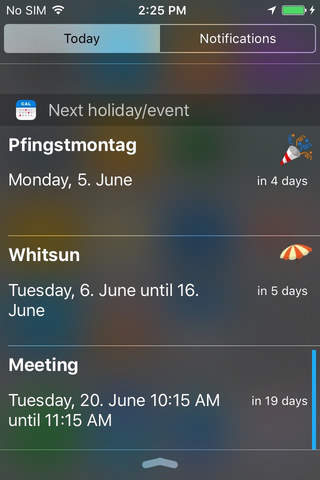 With the help of local notifications you won't miss any future holidays. Plan your vacation or holiday trip with an accurate calendar.