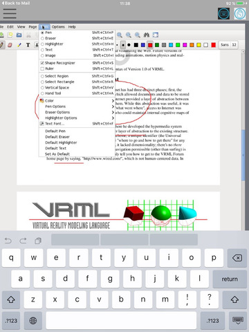 - "Highlighter" acts as a semitransparent pen allowing the user to highlight areas of text or image.
