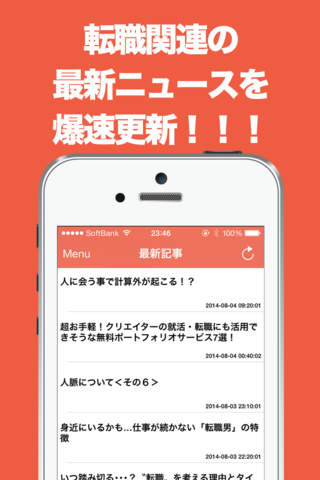 1タップの超簡単操作で最新の転職ニュースがサクサク閲覧可能!