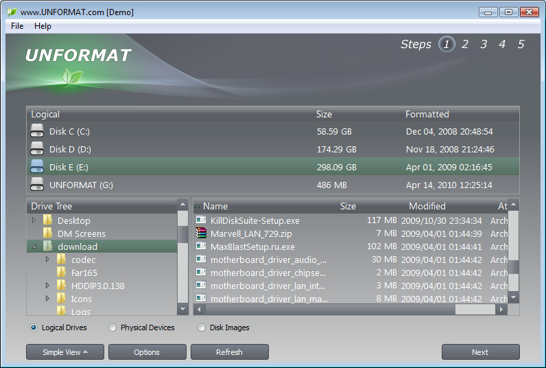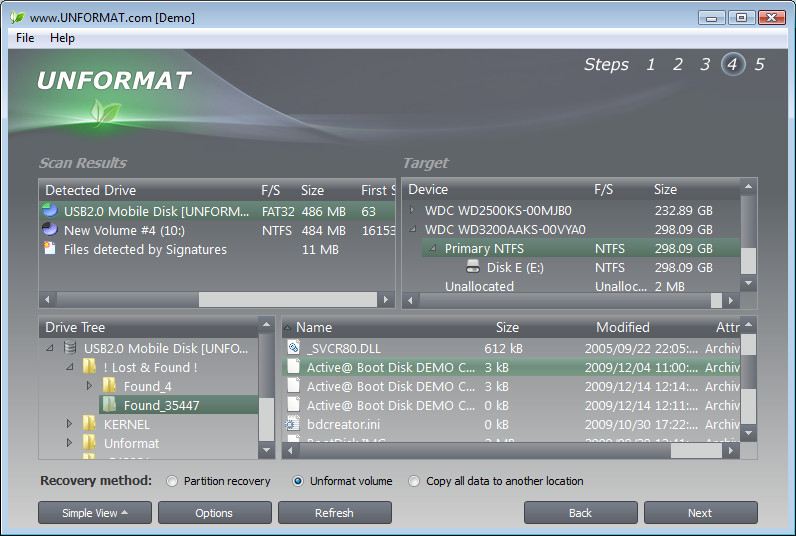 Active@ UNFORMAT je aplikace, která pomáhá s obnovením ztracených dat ze zformátovaných pevných i přenosných USB disků nebo paměťových karet. Program spolupracuje se souborovými systémy NTFS, FAT32, FAT, exFAT, Apple HFS+ a Linux ExtFS.
