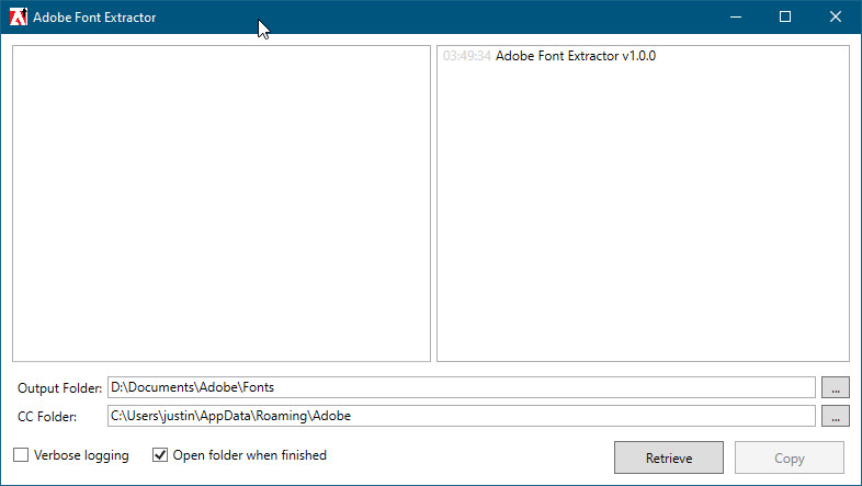 Adobe Font Extractor GUI je pomocník sloužící pro extrakci fontů písma, která jsou synchronizovaná pomocí Adobe Creative Cloud z lokálního systému. Program písma automaticky vyhledává a uživatel může sám zvolit, které písmo chce extrahovat. Nechybí možnost logování činnosti v programu.