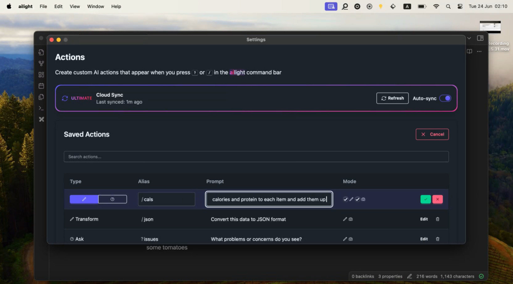 ailight je nenáročná desktopová aplikace, která uživateli umožňuje vytvářet vlastní akce s využitím umělé inteligence (AI) pro často využívané akce. Jedná se například o psaní e-mailů, překlad textu, kontrolu zdrojového kódu nebo opravu gramatiky. Program se aktivuje jednoduše pomocí klávesové zkratky, aplikace se objeví na obrazovce, uživatel odešle výzvu a okamžitě se zobrazí požadované výsledky.