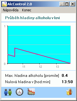 Program AlcControl slouží k výpočtu hladiny alkoholu v krvi. Na základě vypitých alkoholických nápojů v daných časech vám vypočítá maximální hladinu alkoholu v krvi a čas vystřízlivění.