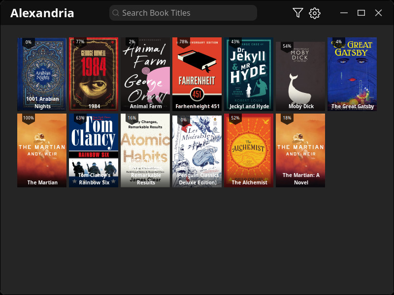Alexandria je minimalistická čtečka elektronických knih, komiksů a jiných publikací, která disponuj všemi základními funkcemi a nevyžaduje instalaci. Čtečka iumožňuje využití vlastních témat, nastavitelnost fontu, zvýraznění textu, vkládání poznámek, ukládání záložek, přizpůsobení velikosti mezer mezi slovy nebo rozvržení rozdělené obrazovky.