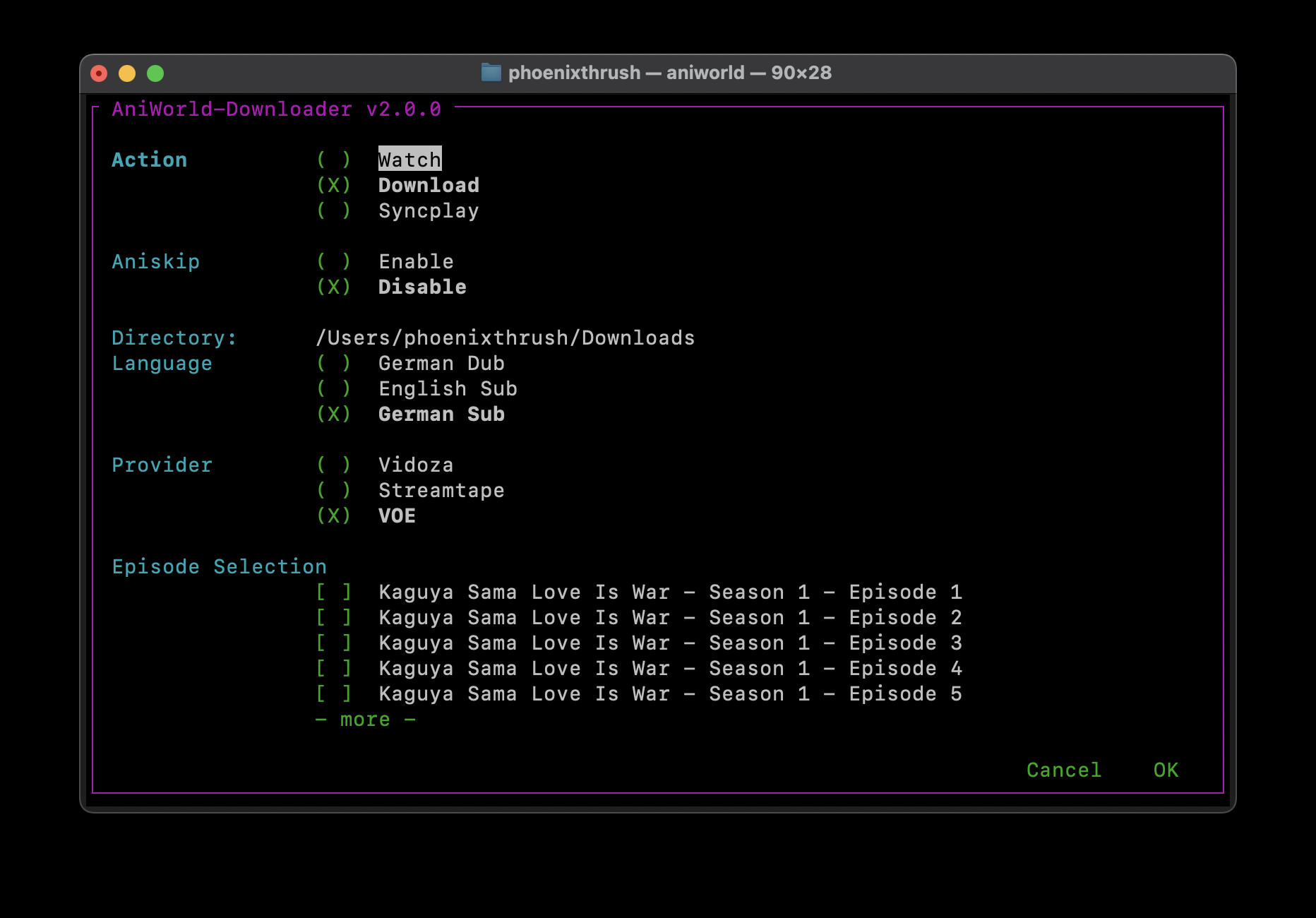 AniWorld Downloader je nástroj ovládaný pomocí příkazového řádku, který je určený pro stahování a streamování anime, filmů a seriálů ze serveru aniworld.to. Stahovat a sledovat lze jednotlivé epizody a série najednou.