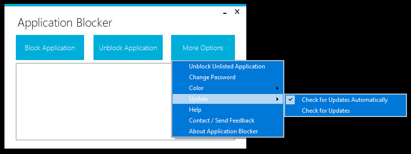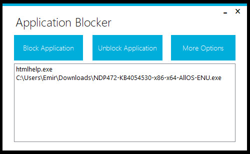 Application Blocker je jednoduchý nástroj, jehož pomocí lze zablokovat spuštění vybraných aplikací nebo služeb. Uživatel může snadno přidat do seznamu blokovaných aplikací jakýkoliv spustitelný EXE soubor. Přístup k programu lze ochránit heslem a zamezit tak nechtěnému odblokování aplikace. Nástroj má velice snadné ovládání.