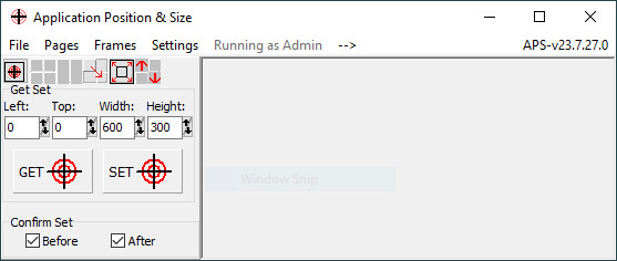 APS je nenáročný nástroj sloužící pro rychlé zjištění nebo také nastavení pozice a velikost oken aplikací ve Windows. V programu se pouze umístí kurzor (terč) nad zvolenou aplikaci respektive okno a tím lze zjistit jeho aktuální pozici a velikost. Zjištěné údaje lze uložit do databáze a případně je změnit.