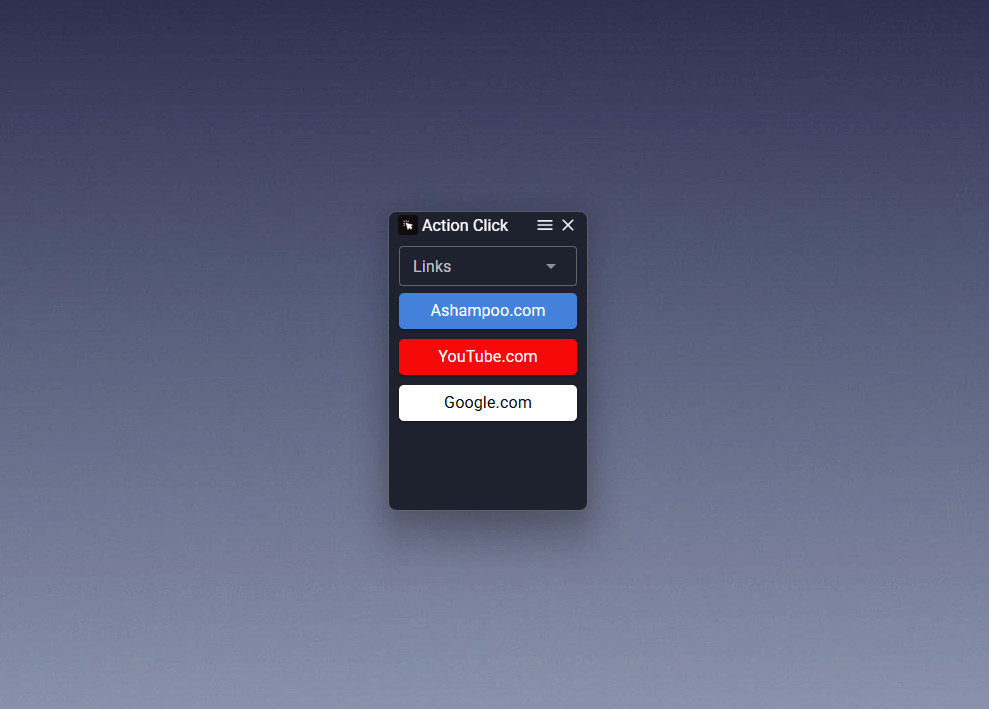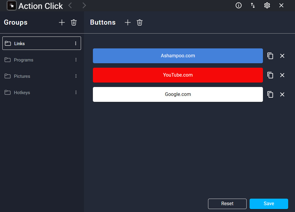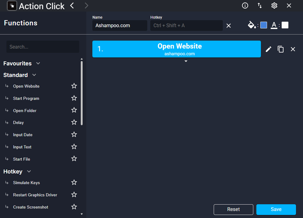 Ashampoo Action Click je nástroj nabízející automatizaci různých rutinních činností při práci s počítačem pomocí vlastních maker a příkazů. Uživatel si může vytvořit vlastní nástrojový panel s tlačítky, který pak usnadňuje a urychluje přístup k často používaným programům, webovým stránkám a funkcím.