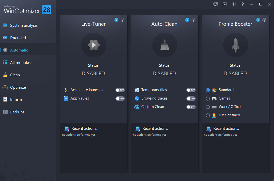 Ashampoo WinOptimizer je skvělé řešení pro optimalizaci a zvýšení výkonu operačního systému, opravu chyb ve Windows a pro odstranění všech dočasných nebo zbytečných souborů a záznamů.