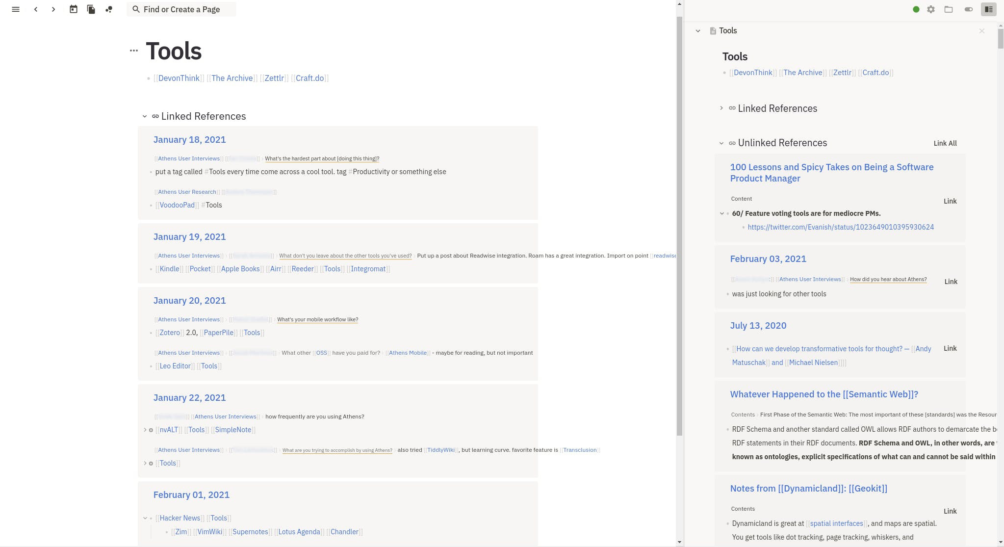 Athens je software, který slouží pro přehlednou strukturovanou správu různých poznámek, nápadů, úkolů apod. Jednotlivé poznámky lez zaznamenávat velmi efektivním způsobem a kromě klasického textu lze vkládat odkazy na dokumenty nebo jejich části. Strukturu všech zapisovaných poznámek je možné zobrazit pomocí grafu respektive diagramu) znalostí.