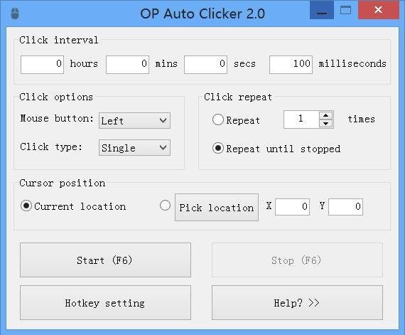 AutoClicker je nenáročný nástroj pro nastavení automatického klikání myší v předem nastavené oblasti pracovní plochy. Nastavit lze klikání levým, pravým či prostředním tlačítkem a také daný počet kliknutí nebo ponechat neomezený počet. Program není třeba instalovat.