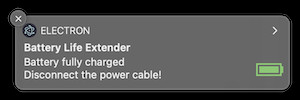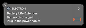 battery-life-extender for Mac je jednoduchá pomůcka, jejíž pomocí lze prodloužit životnost baterie Macbooku. Program totiž zobrazuje notifikace při nízkém stavu nabití baterie (pod 15%) nebo naopak při plném nabití baterie přenosného počítače s macOS. Přístup k aplikaci je přímo v panelu nabídek pro snadný přístup.