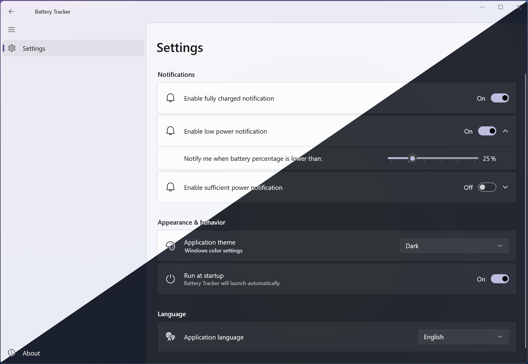 Battery Tracker je jednoduchá pomůcka zobrazující na hlavní nástrojové liště ve Windows aktuální stav baterie notebooku nebo jiného přenosného zařízení. Stav baterie je zobrazen v procentech a identifikováno je také případné nabíjení a plná baterie.