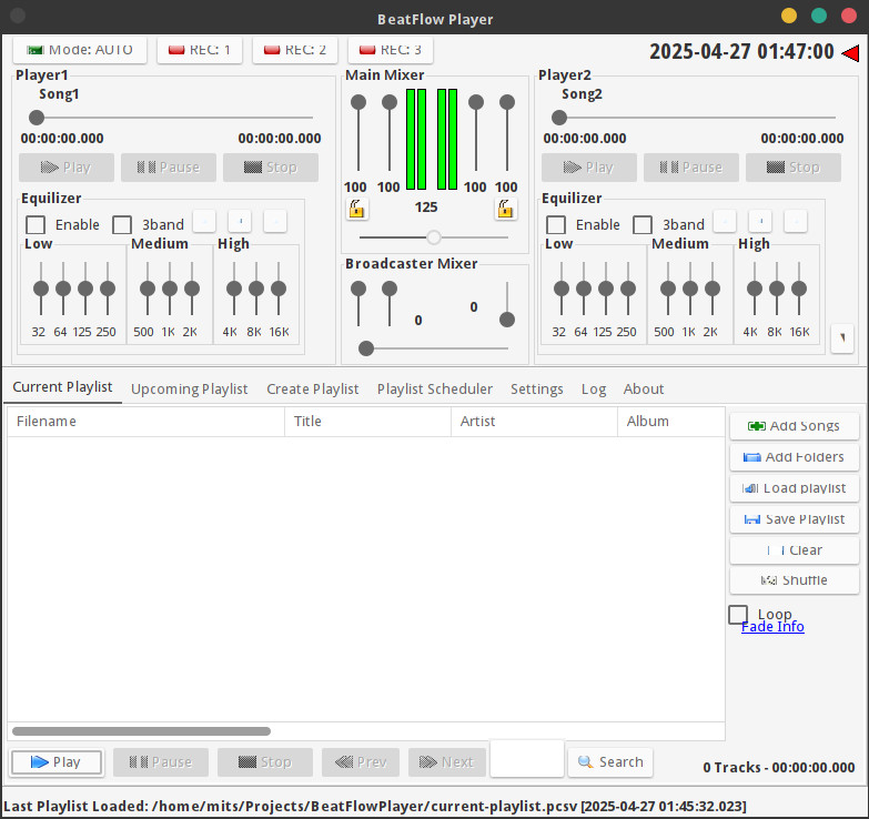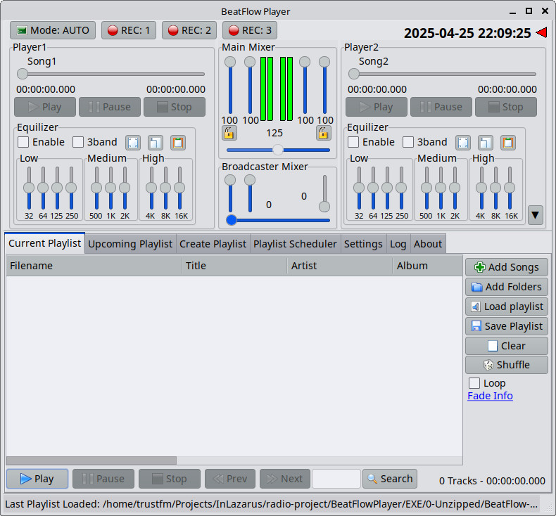 BeatFlow Player je aplikace sloužící jako přehrávač s funkcemi pro automatické a plánované vysílání online rádií s možností tvorby vlastních playlistů a funkcemi pro mixování hudby.