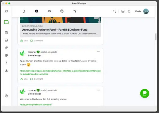 BestOfDesign je online služba, která slouží jako zájmová sociální síť pro tvůrce, různé umělce a také pro produktové nebo průmyslové designéry. Služba nabízí přehledné prostředí pro sdílení zkušeností a dovedností, tipů, ale také pro učení se nových věcí. K dispozici je sekce skupin pro designéry se stejnými zájmy. Program pomáhá také nacházet nová obchodní spojení i nové příležitosti.