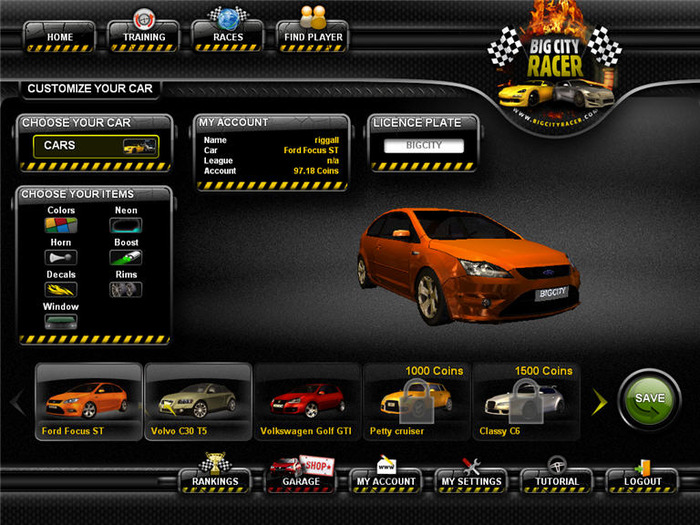 Big City Racer je pěkná závodní hra, která je určena pro on-line hraní přes Internet formou multiplayeru. Auta lze samozřejmě neustále vylepšovat pomocí tuningu a v nabídce je široká škála závodních drah s různými druhy povrchů silnic. Závodní tratě se nacházejí například ve Vídni, Berlíně, Paříži nebo v Londýně.