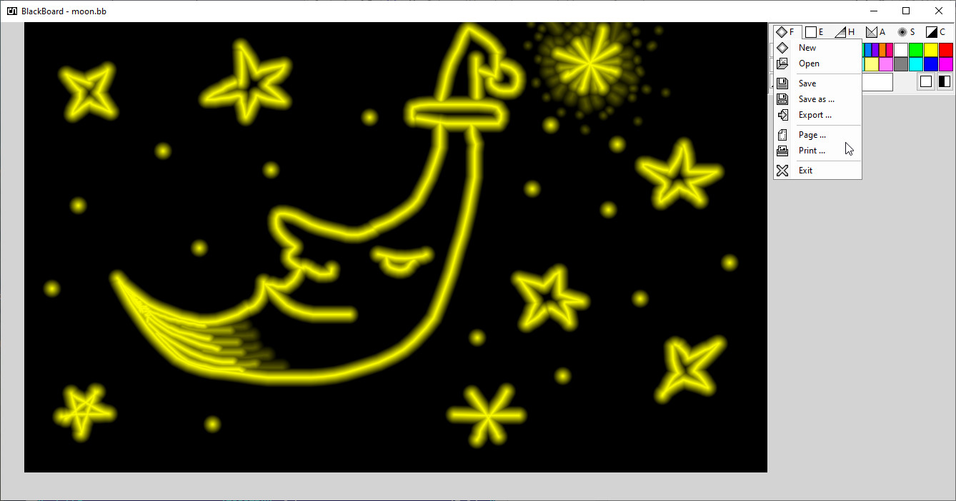 Blackboard je jednoduchý nástroj pro kreslení od ruky na papír s možností zadávání výšky a barvy. Má několik režimů pro výšku, tvar a kombinace nástroje. A má černobílý režim. Dokáže kreslit různé tvary z klávesnice.