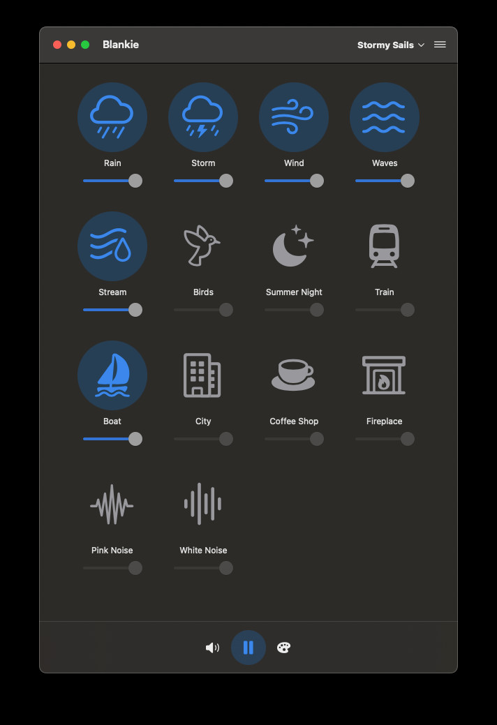 Blankie for Mac je aplikace sloužící jako jakýsi mixážní pult různých ambientních zvuků respektive zvuků okolí pro macOS, která je inspirována aplikací Blanket. Hlavní účelem programu je podpora soustředění, zvýšení produktivity nebo k usnadnění usínání v hlučném prostředí.