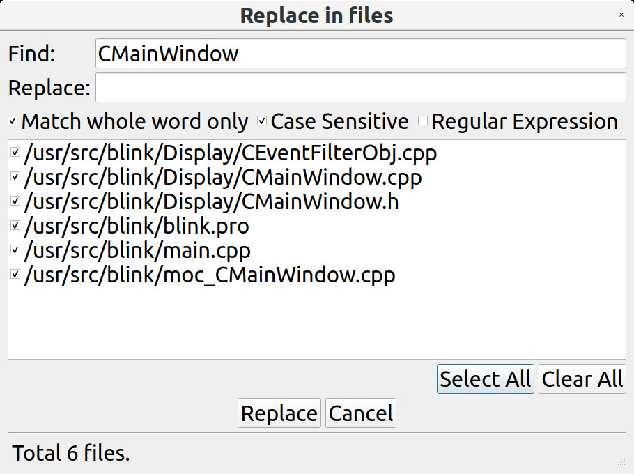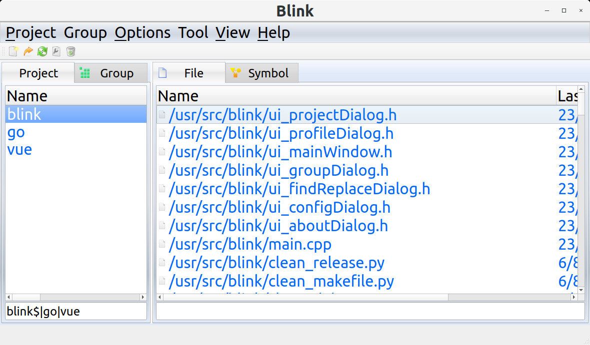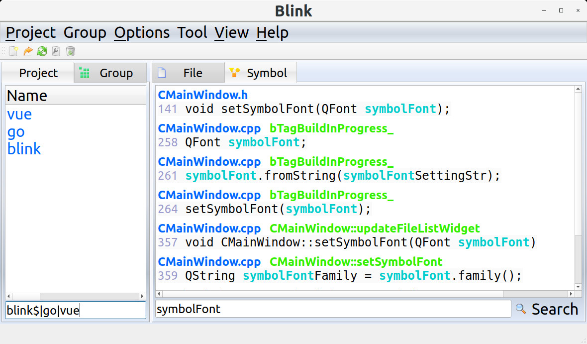 Blink code search je nástroj pro rychlé a snadné vyhledávání ve zdrojových kódech programů. Program nabízí přednastavený index index a podporuje autokompletaci vyhledávacích dotazů. Možná je i tvorba vyhledávacích profilů pro vyhledávání uvnitř projektů respektive složek. Výsledky vyhledávání jsou zobrazeny ve formě přehledného seznamu souborů nebo pomocí náhledu zdrojového kódu.