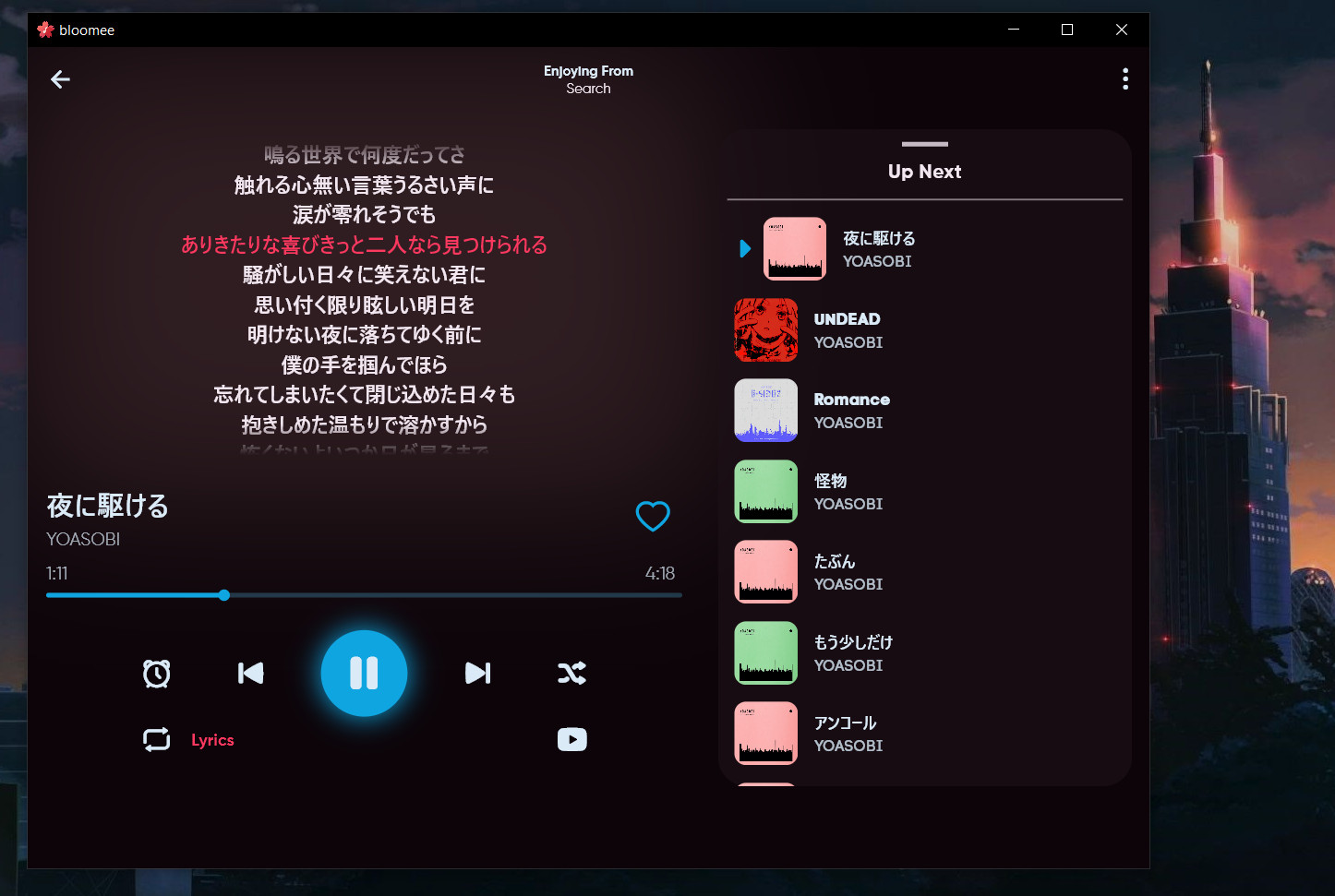 Bloomee je aplikace sloužící pro přehrávání hudby z různých online zdrojů bez zbytečných reklam. Hudbu lze přehrávat například ze serverů YouTube, Lasf.fm apod.