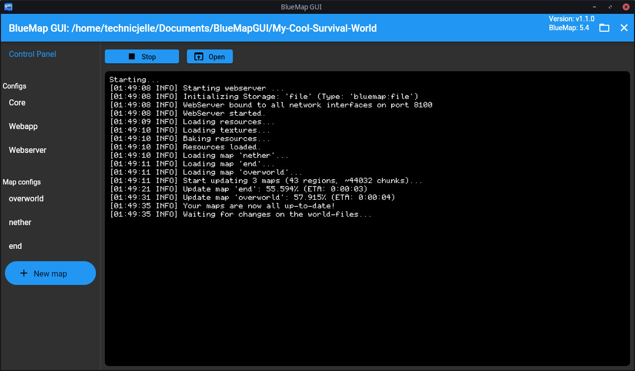 Program dokáže vykreslit mapu Minecraft světa i bez nutnosti nestavení celého Minecraft serveru. Nástroj umožňuje uživatelům, kteří jsou obeznámeni s příkazovým řádkem nebo nemají server, snadno používat nástroj BlueMap.